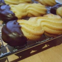 - Als je wil kan je ze nu (helemaal afgekoeld!) in gesmolten (pure) chocolade dopen.
